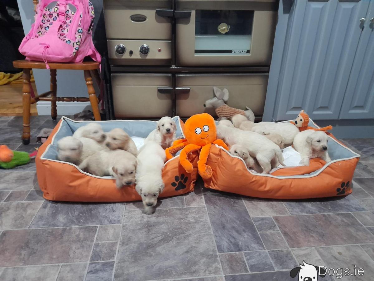 We are delighted to present our wonderful litter of Golden Retriever puppies, now available for their forever homes. At just nearly 8 weeks old, these affectionate puppies have been raised in a loving environment, surrounded by children and other pets, ensuring they are well-socialised and ready to adapt to family life.