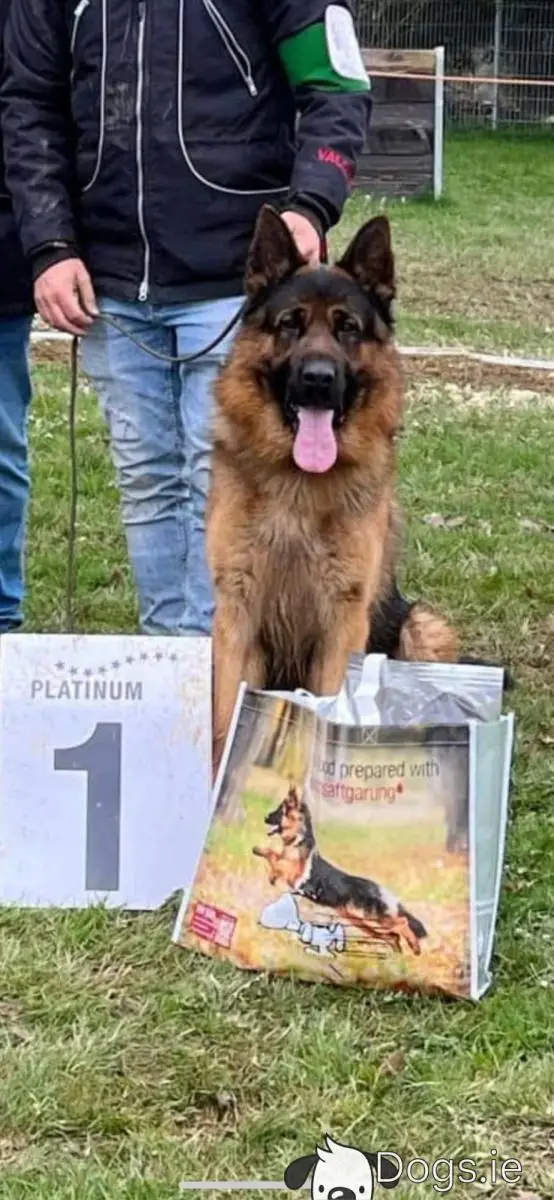 Very good dark colours. Good with other dogs and people. Used to kids.